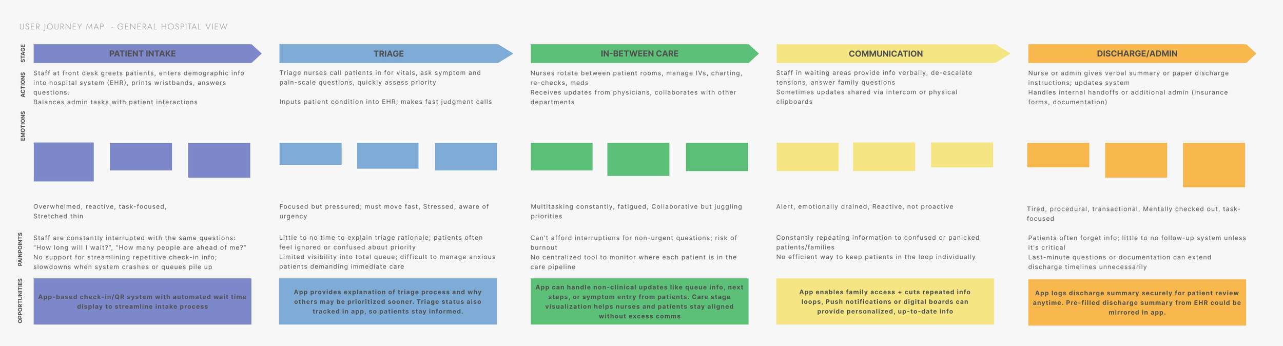 Studying ER layouts, intake processes, and user mental models showed how much information could be added without overwhelm.