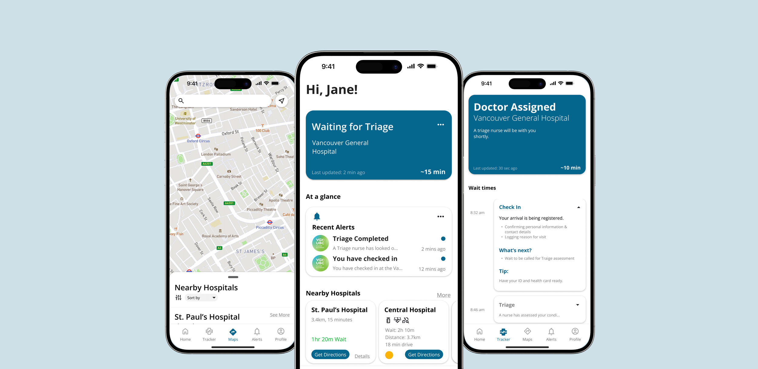 A mobile and in-hospital system that brings clarity to emergency care, reducing uncertainty, easing overcrowding, and improving hospital flow.